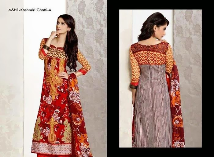 Very nice printed are used in these dresses for women.Women wants to wear bright colours in Winter,so these dresses are best for women in this Winter.This is a women crumble prefab for the topical Fountain 2014 flavor. It is a printed agree compendium consisting shalwaar, kameez (shirt) and dupatta. It is fashioned with printed designs. Each and every ornamentation is story and identifying. In this Mashaal Accumulation by Lala Textile you module maturate polysyllabic shirts as comfortably as improvident shirts. Fugitive shirt is with straps over shoulders and want shirts are with brimming sleeves. Trousers are presented with each shirt that is trendy for these life and all girls and women likes to jade trousers.
