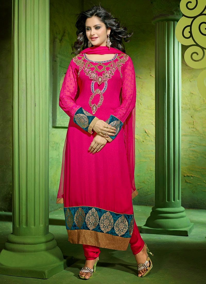 Shalwar Kameez is a cultural and traditional of Pakistani and Indian women.Short shalwar Kameez is perfect for casual wear it looks like beautidul and decent look for women.In india the punjabi women wears short shirt with shalwar and Long dupatta.Asian shalwar kameez suits collection 2015 for women contains simple and printed fabrics.Embroidered work on all short shirts around the nickline and on dupatta.These Dresses are consist on Short shirts,Trousers,Shalwar,Patiala Shalwar,Churidar pajma and Dupatta.